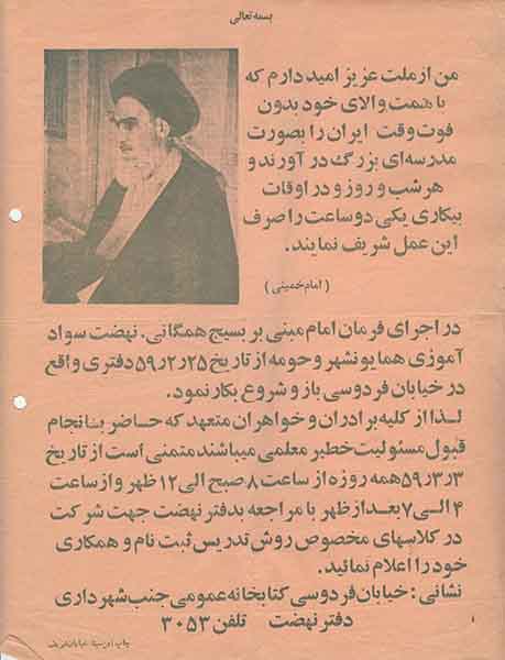 اعلام افتتاح دفتر نهضت سوادآموزی همایون شهر