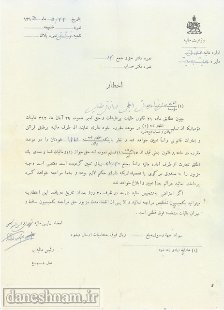 عناوین اسناد مالیاتی سده