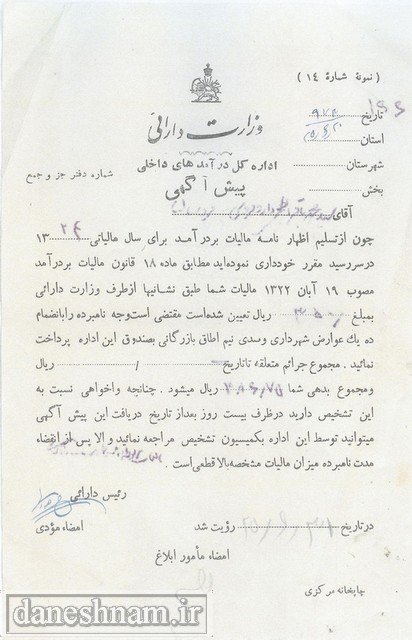 چند سند اخطار و دریافت مالیات از کسبه سده، دهه اول و دوم قرن 14