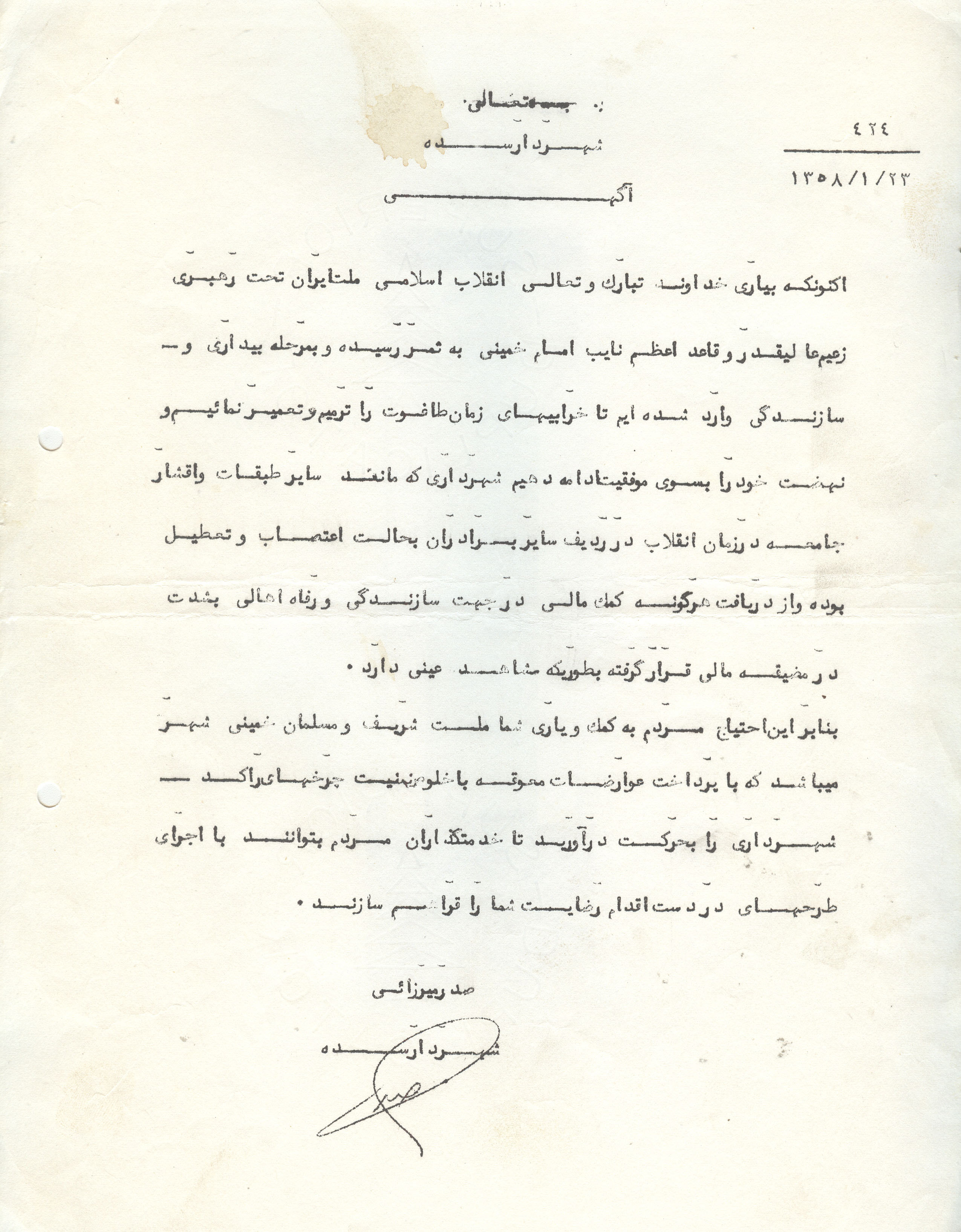آگهی شهرداری همایونشهر پس از انقلاب